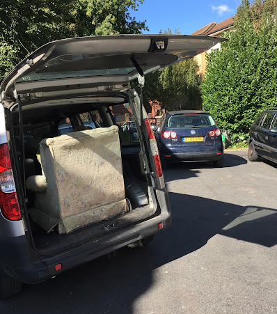 I was inspired by the Instagram account of Bristol-based upholsterer Sadie Campbell who photographs discarded furniture on the streets of Bristol (check out @sadiedidi). There seems to be so much of it that I thought I have to do something about it. So I asked her to locate an armchair that I could pick up when I was driving back to Wales via Bristol. She very kindly found the one above in Easton. Here it is in the back of the van.